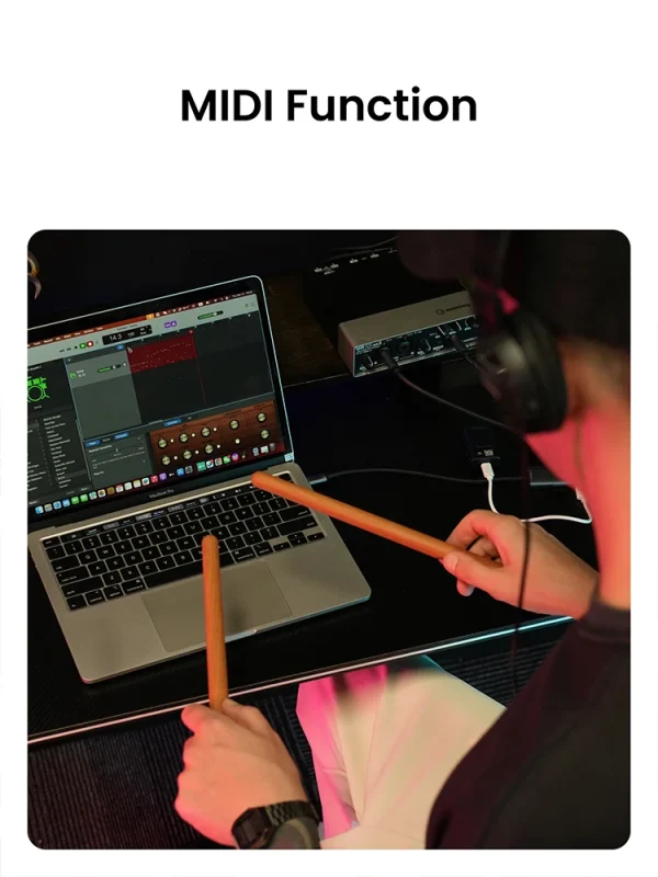 Composed of a pair of drumstick-shaped devices and two compact foot pedals, the set allows users to play various rhythms by striking in the air. The somatosensory technology within the product marks a startling progression from traditional electronic drum sets, activating a corresponding sound module with every swing. The drumsticks and foot pedals respond instantly to the player’s movements, offering a real-time and immersive drumming experience.