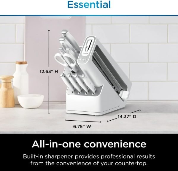 Ninja Foodi NeverDull Knife Set K12010, High Carbon Stainless Steel, Built-In Sharpener, Ergonomic Handle, Durable 10pc Kitchen Knife Block Set (White)