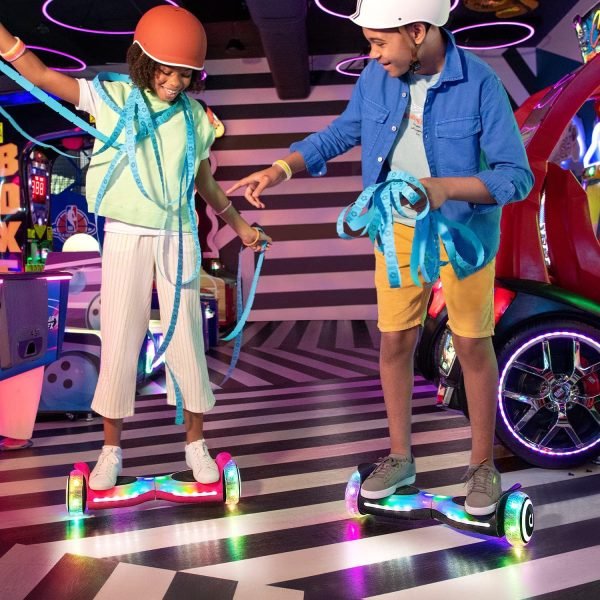 HIGH VISIBILITY, HIGH STYLE: These hoverboards are safety equipped with high visibility lights from the front and sides with forward headlights and RGB wheel LEDs. The heavy-duty construction has a cool profile and easy-to-ride style perfect for kids, teens, and adults.