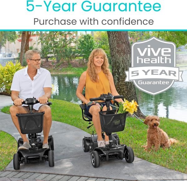 CUSTOMER-DRIVEN BRAND: The Vive Mobility Scooter is the result of extensive research and design efforts, tailored to meet the specific needs of our customers. With a focus on safety and comfort, our team is dedicated to providing exceptional customer service–ensuring that you have the best possible experience with your scooter. A trusted family-owned brand, our scooter comes with a 5-YEAR GUARANTEE. Don’t settle for less. Shop Vive. Purchase now with confidence.