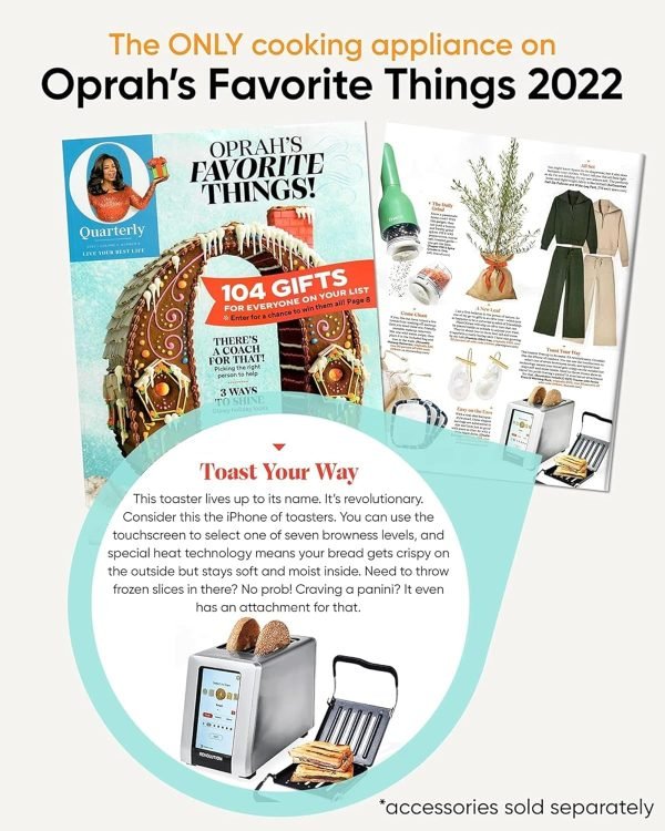 Toast The Foods You Love: The ultimate smart home gadget, this 2-slice toaster features a touchscreen complete with a customizable home menu and 34 preset bread type algorithms that expertly toast a wide range of foods, including gluten-free options